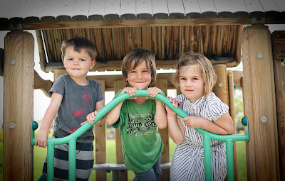 Today was overcast with a smattering of sun. A perfect morning in my opinion, to play and take some pictures at the park down the street. I was the crocodile and the kids ran away from me (they could play this for hours). The play structure was the "safe place" from the child hungry crocodile and Sam and Rocco also used their super powers to fight me off.