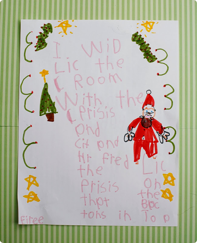 I love, LOVE this stage of sounding words out. It is so endearing. And I'm so proud of Clara for trying. It has only been the last couple of months that Clara has really been practicing writing on her own. Before that, she didn't even want to try for fear of failing. I think she felt it had to be perfect right off the bat (kind of sounds like me).