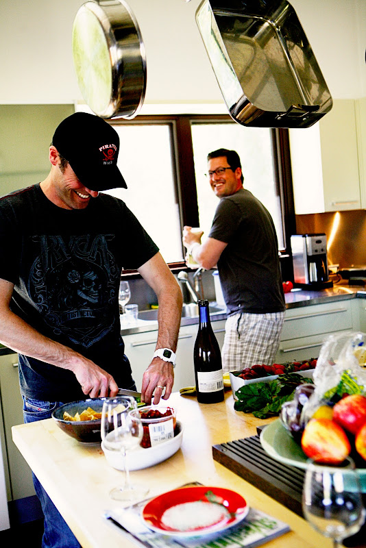 And this afternoon our besties arrived! Together, our combined 7 kids have been left at home with Grandma's and YaYa's and Auntie's, and we are so thankful. We are reliving our University days when we used to get together and eat nachos and drink raspberry hefeweizen and laugh our butts off at Barney's. Only now we are in the second part of our 30's, eating artichokes with aioli and drinking champagne, but still laughing our butts off.