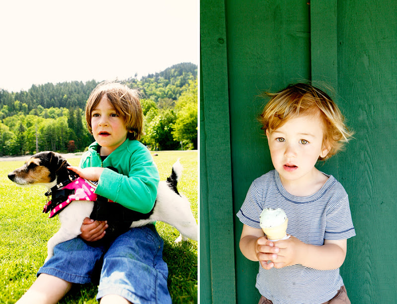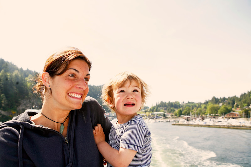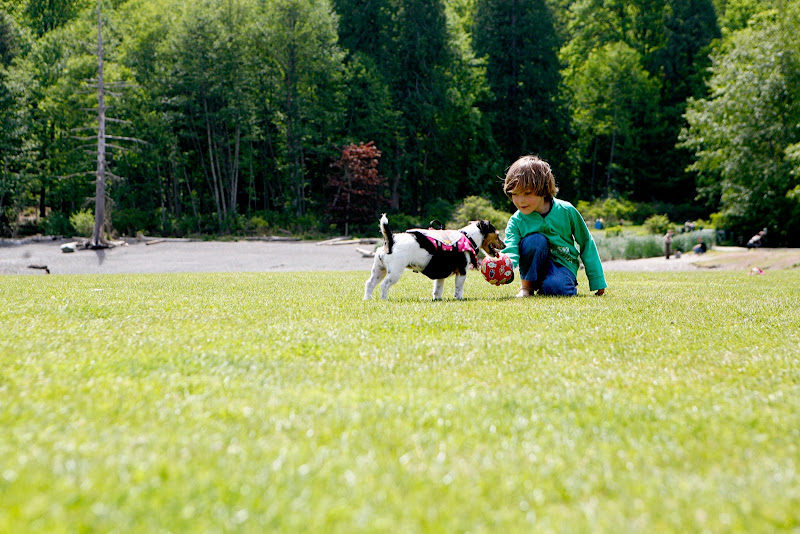 It was Charline's last full day with us on Saturday before we sadly dropped her off at the airport for her flight back to France (she is coming back in June!). We wanted to go somewhere she hadn't been to yet, although I'm sure she has explored more of Vancouver than most people who have lived here all their lives! Anyway, Sam suggested we go to Hawaii, Charline wanted to see Whiterock and we ended up on the ferry to Bowen Island. Sam brought his bike, Will brought his trike and we played on the field, ate and drank and bathed in the warm sun. Sam made a new buddy-a crazy Jack Russel who Sam says runs as fast as him. We are going to miss Charline this month, but thank goodness she is returning. It is too hard to say goodbye.
