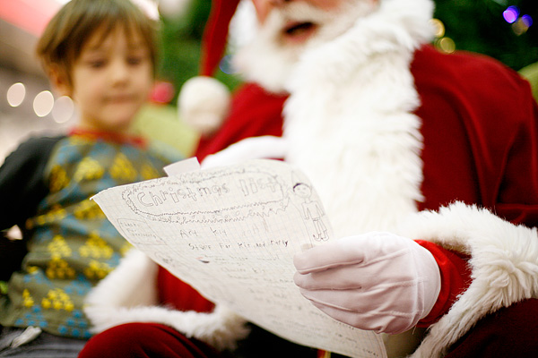 Clara and Sam brought their Christmas wish lists from the fridge as well as a list of questions...all of which mall Santa answered.