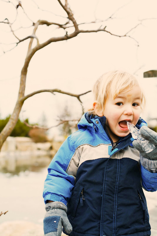 The pond down the street has frozen over, which means lots of skating, tag, playing and icicle eating, as well as the kids asking me over and over again when we are going to the pond??