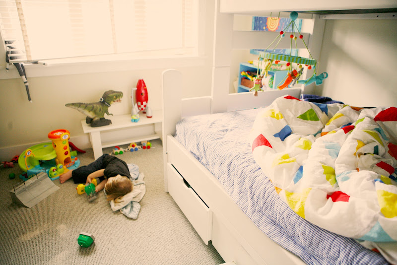 January also brought the arrival of the bunk bed for the boys, Sam turning 5, Charline from France, our house almost getting organized, Jake's disappearing gut (he looks hot), a somewhat regular Church attendance, a new layout in our bedroom...