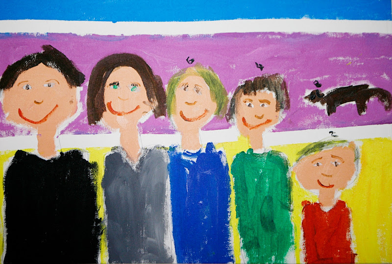 So...I'm not off to a great start, being February 10th and all, but I do have a current painting Clara did of our family.