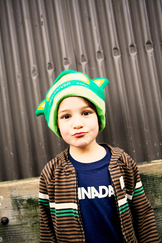The photo probably will not win a prize, but it is us, our family together, doing the things we do. I made Charline take it moments after Canada won GOLD in the men's hockey game! (we are standing in front of the tele). You can't really see in the picture, but our house is a disaster. The floor is covered in salt and vinegar chips and puzzle pieces, the bunnies are hopping and pooping on the couch, Will just dumped the tinker toy bucket and we had just been feasting on wings, chips and dips, beer and M&M's while watching the game.